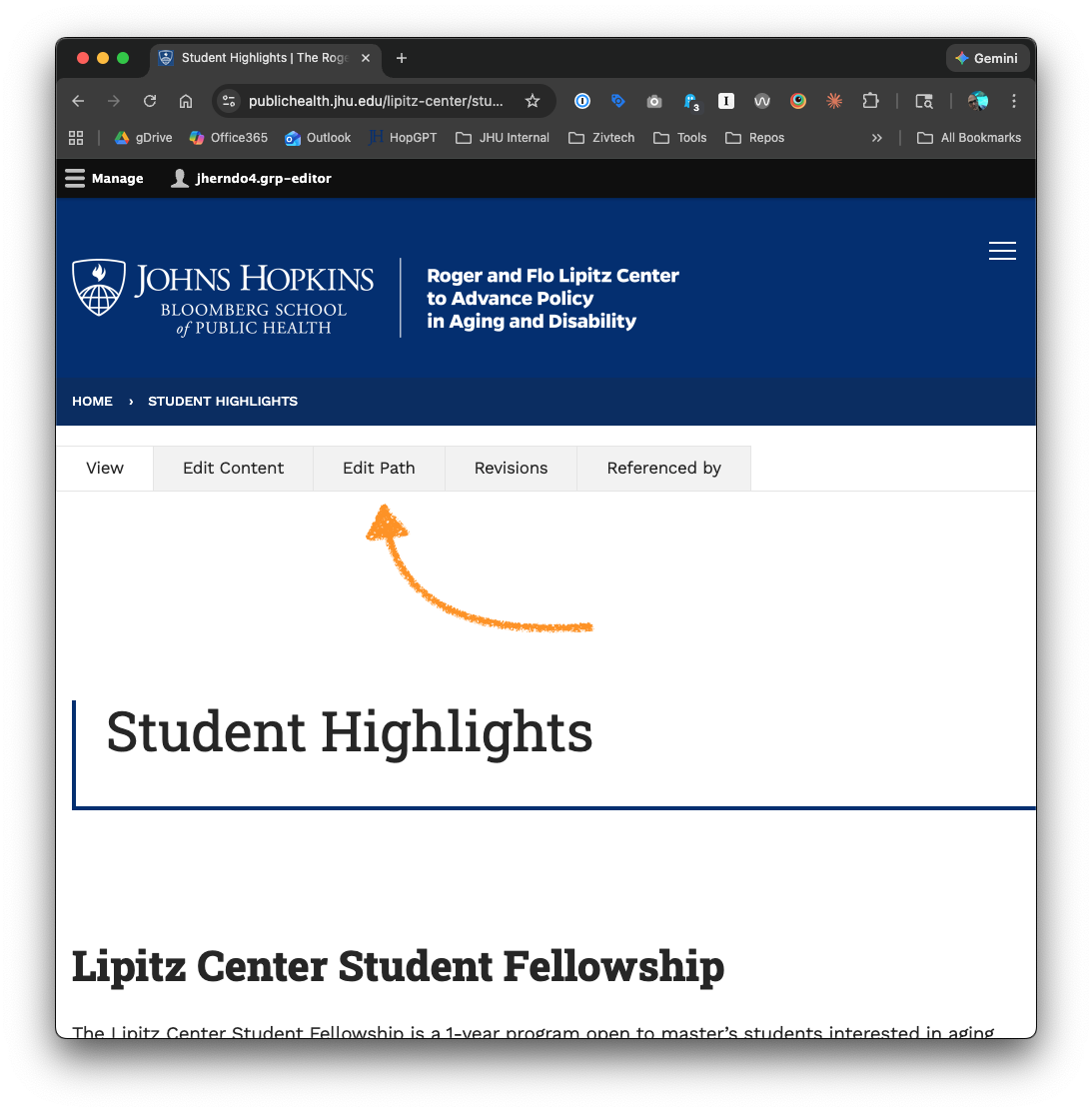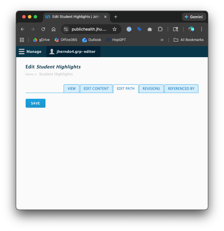 Pay special attention to the SEO title since it determines the page path - Update the URL